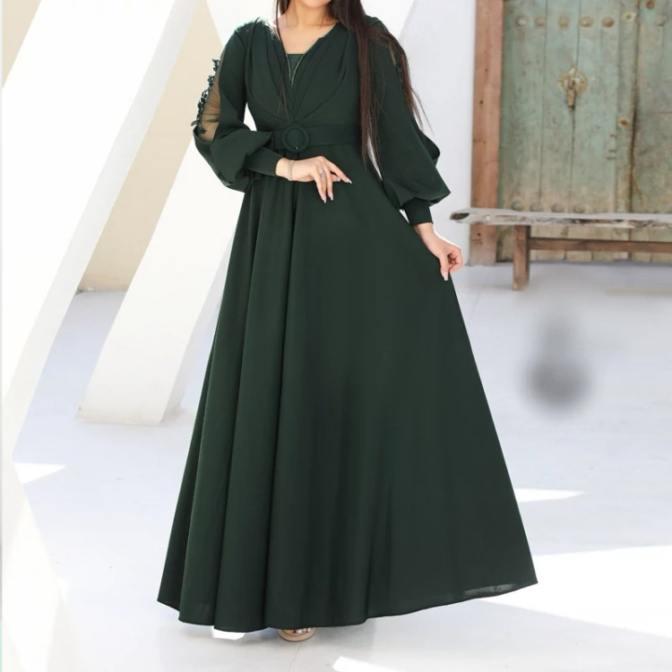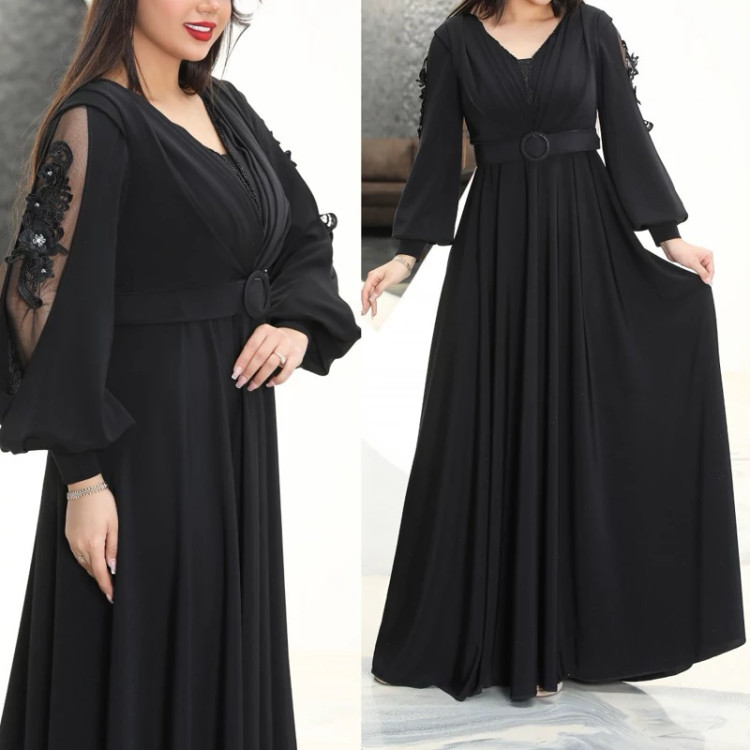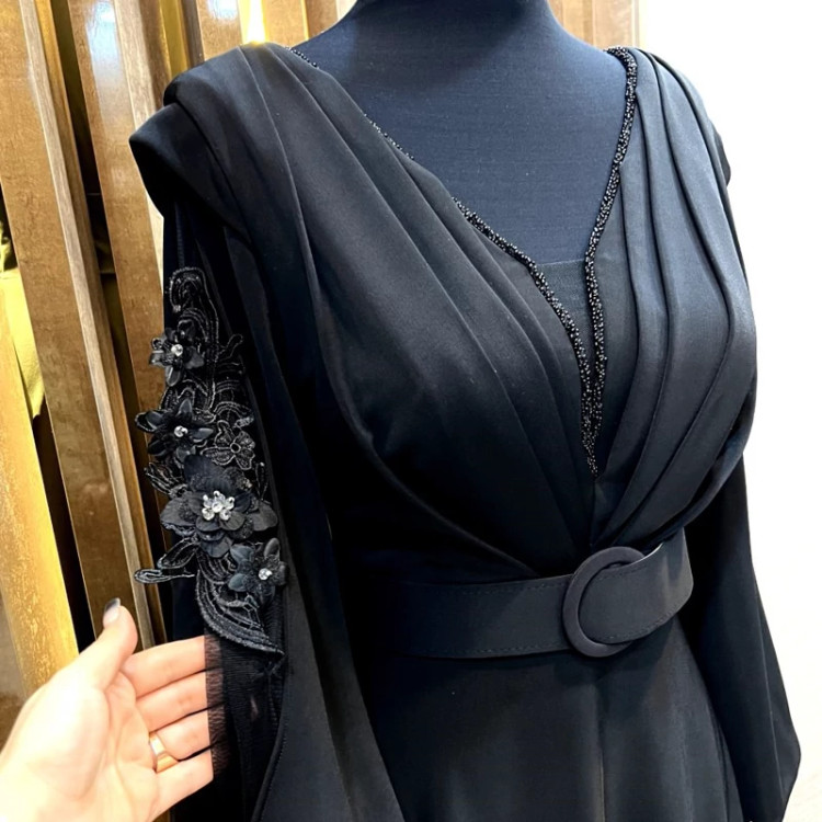 ⚜جنس : کرپ غواصی و استین تور و دانتل برجسته یقه نواردوزی شده با کمربند