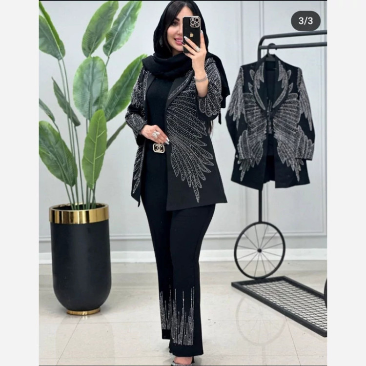 کت شلوار مجلسی نگینی زنانه کت شلوار مجلسی طاووس