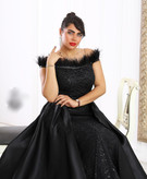 ⚜متریال :حریر شاین برجسته و دنباله ی ساتن (دنباله قابلیت جدا شدن داره) با دیزاین پر