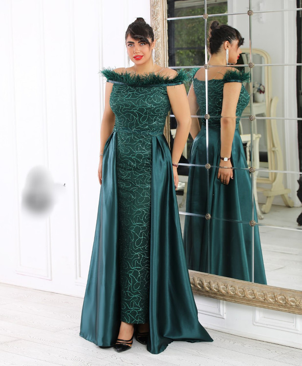 ⚜متریال :حریر شاین برجسته و دنباله ی ساتن (دنباله قابلیت جدا شدن داره) با دیزاین پر
