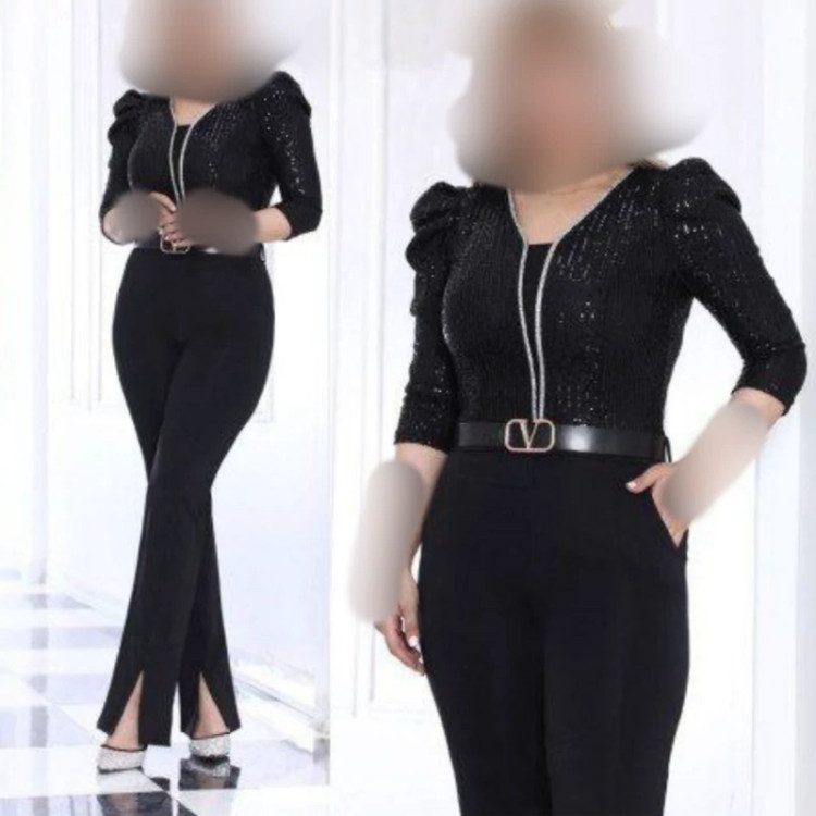 🌟متریال : بالاتنه پولک زارا دیزاین شده با نگین مغزی دوزی شده شلوار قواصی گرم بالا به همراه کمربند بهترین دوخت و پارچه کیفیت تضمینی👌👌👌
